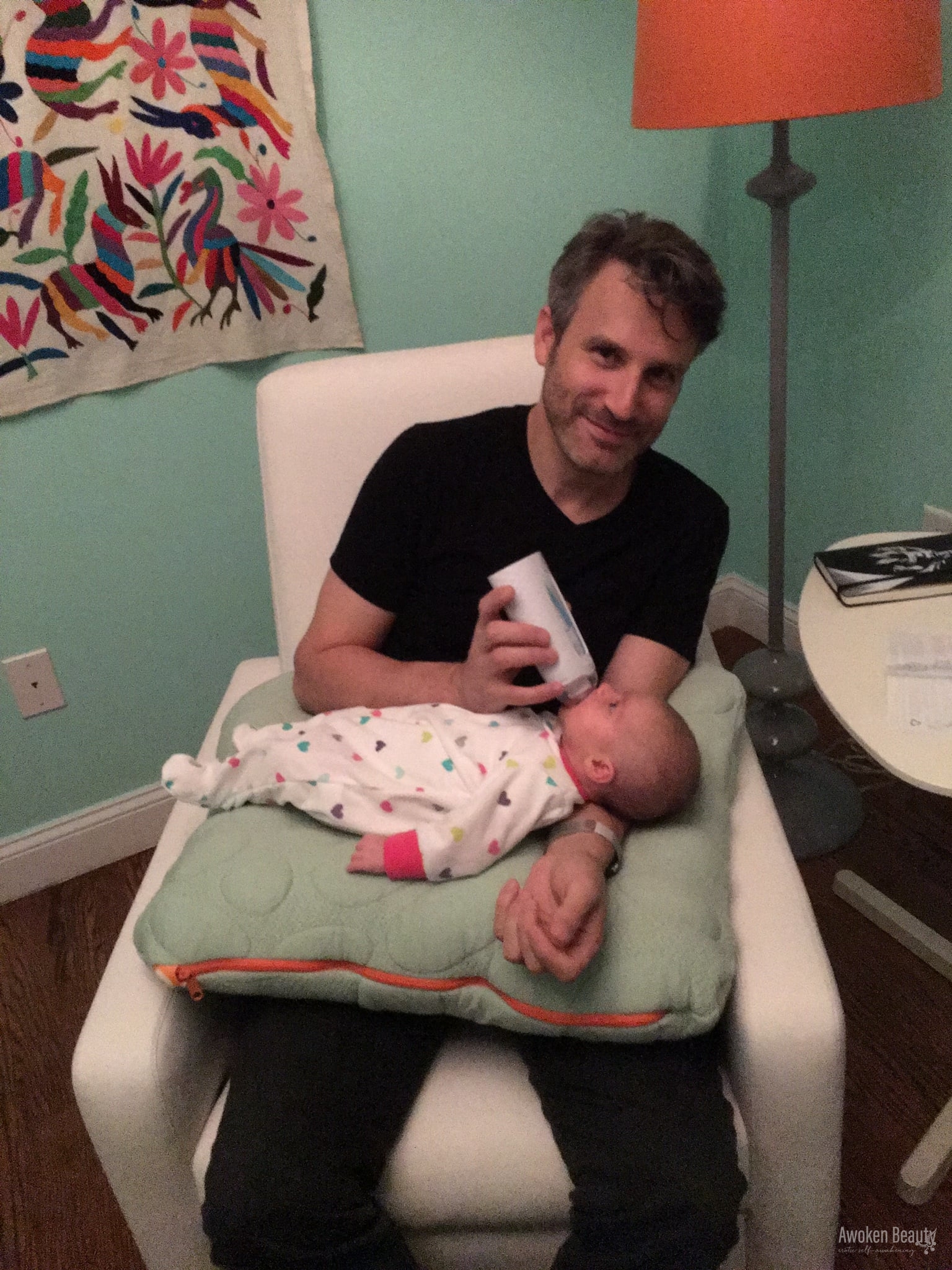 I feel blessed and grateful for what an amazing, involved partner I have. If it were up to him, he’d be the next one getting pregnant. He never skipped a midwife appointment, nor now, a pediatrician appointment. He never missed a sonogram. He read the pregnancy books and the labor books. We went to classes together in preparation for her arrival. He bathes, sings, massages, clothes and reads to her every single night. And then makes me a drink.